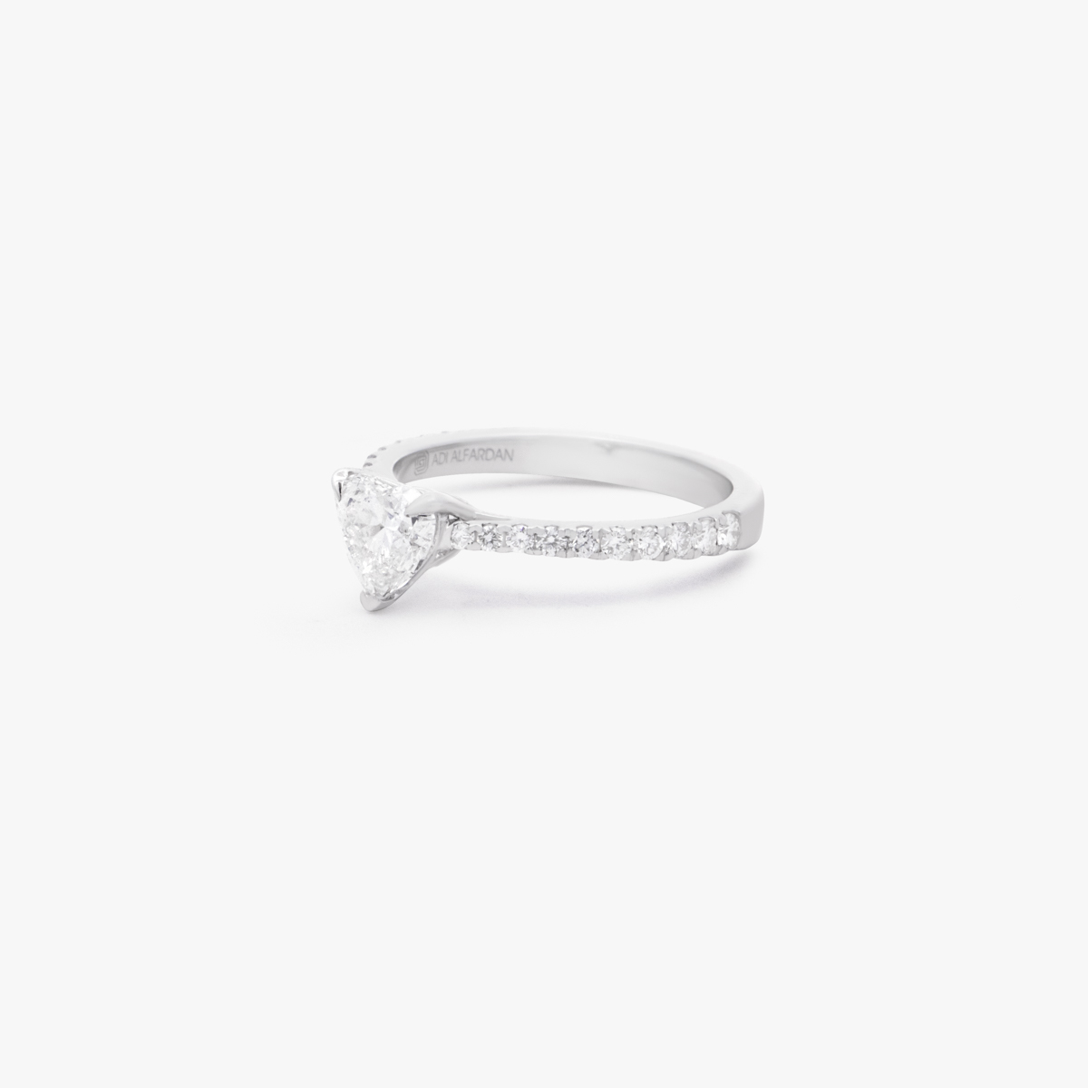 A heart-shaped center diamond symbolizes endless love, set atop a seamless eternity band of natural diamonds.