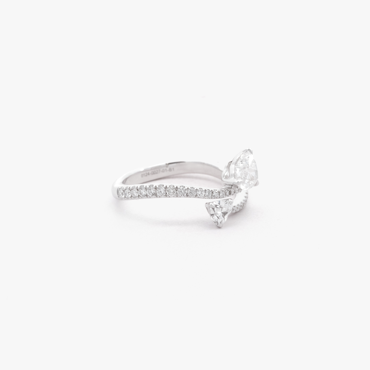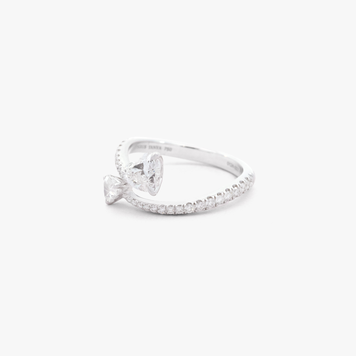 Two heart-shaped diamonds meet on a pave-set band, symbolizing an unbreakable bond.