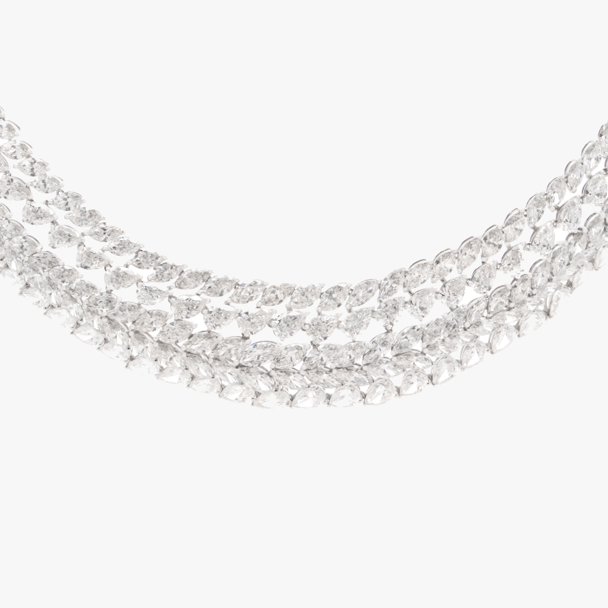 A composition of layered brilliance, this necklace harmonizes four layers of marquise-cut diamonds, pear-shaped diamonds, and reverse-set marquise cuts, culminating in a breathtaking cascade.