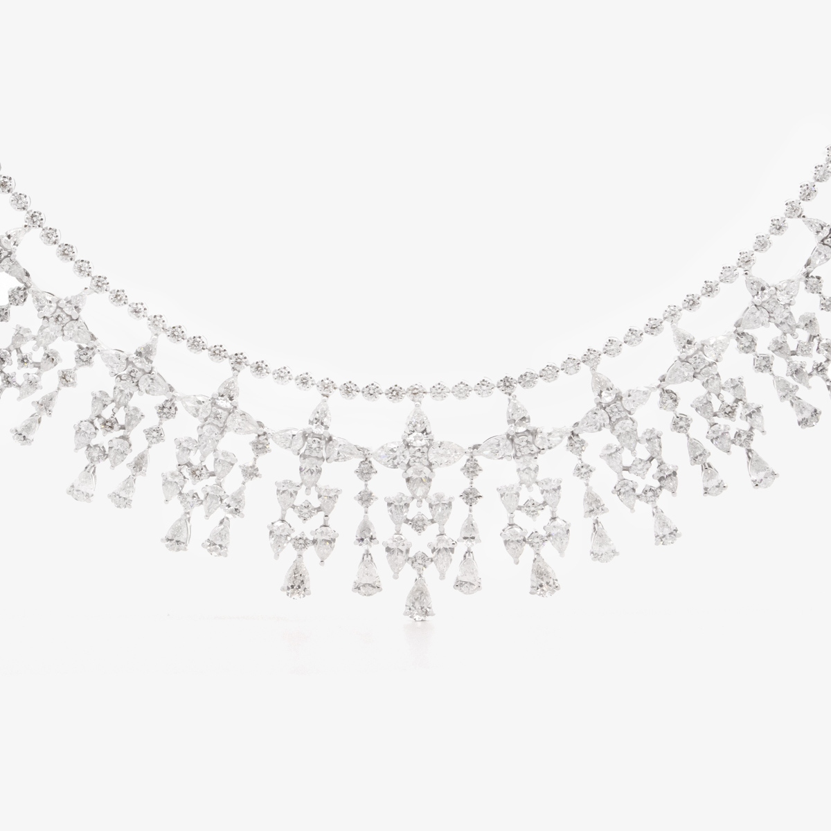 An exquisite creation inspired by the legendary Hanging Gardens, this necklace combines the finest natural diamonds and rubies, forming an intricate, cascading design reminiscent of nature’s splendor.