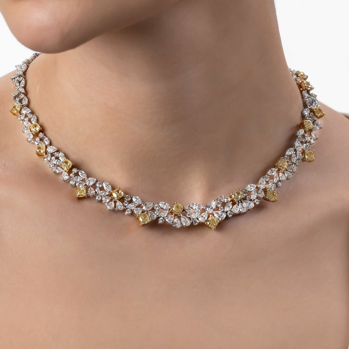 A stunning set featuring the radiant beauty of yellow diamonds paired with pristine white diamonds. Each diamond above 0.3 carats is GIA Certified, ensuring exceptional clarity and sparkle. F, G, and H colors with VS+ clarity.